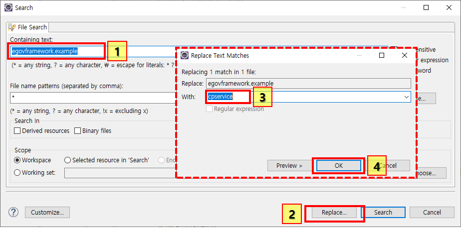 #스프링 #Spring #전자정부프레임워크 #기본예제 #Sample #프로젝트 #이름 #패키지 #바꾸기 #파일 찾기 #샘플