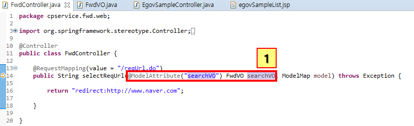 public String selectReqUrl(@ModelAttribute("searchVO") FwdVO searchVO, ModelMap model) throws Exception {