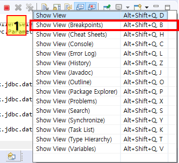 Breakpoints 탭 추가 "Alt + Shift + Q" + "B"