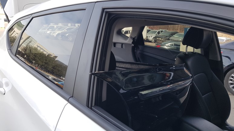 근데 휀더부분이 뾰족해 창문에 막혀 창문을 열고 적재했다.