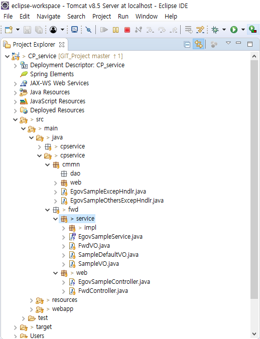 모든 소스들이 다시 로컬저장소 기준으로 돌아갔다. 만들고 없애고 개판친 파일들도 다 없어졌다. 아마 이상태에서 서버를 Run하면 오류가 생길것이다. 이미 Target폴더에 전껄로 생성된게 있어서. 이럴땐 프로젝트를 Clean해주고 진행하자.