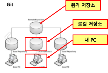 전에 설명했던 GIT의 구조 사진이다. PC -> 로컬 저장소(내 컴퓨터) -> 원격저장소(GITHUB) 순으로 소스들이 올라오는데 여기서 과거버전으로 복구하는건 로컬에서있는 소스를 내 PC로 가져오는 것이다.