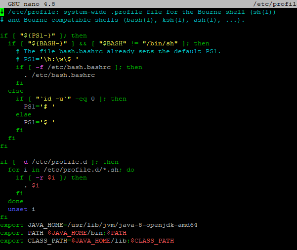 sudo nano /etc/profile --환경변수 파일 수정