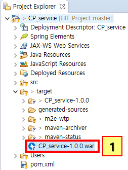 빌드후 달라진 점이라면 target 폴더에 .war 파일이 생성됐다..! 이게 배포파일이고 이걸 톰캣 폴더에 갔다놓고 재부팅하면! 내가만든 서비스가 시작된다!