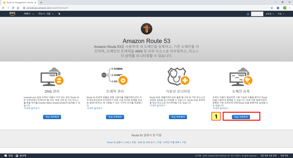 위 링크로 들어가 Route 53 서비스 페이지로 들어가자