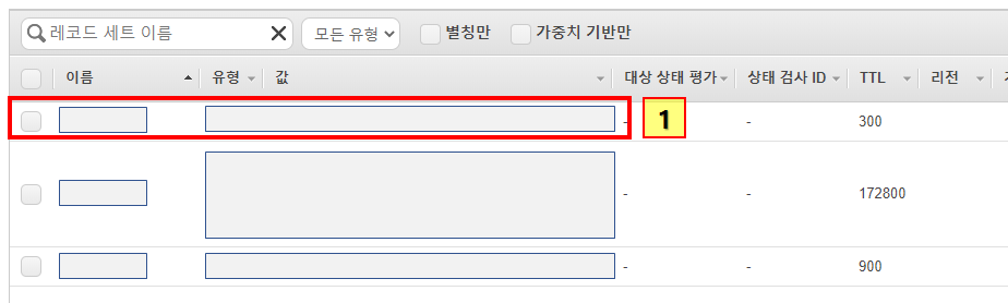 위와같은 화면이 나오는데 1번 박스에 있는 레코드 세트 생성 버튼을 누르자!