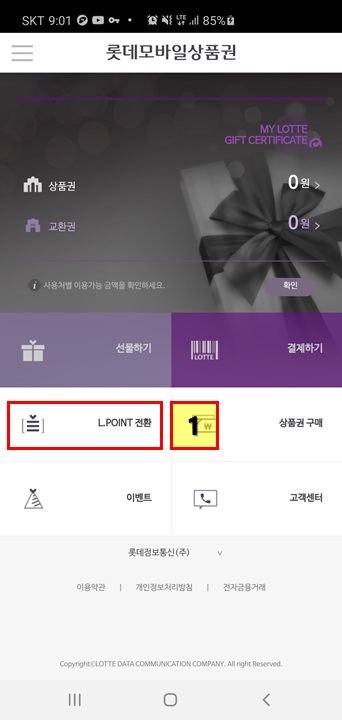 1. 롯데 모바일 상품권 → 롯데 엘포인트 전환