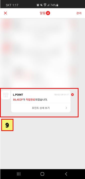 9 그럼 페이코 포인트가 적립되었다는 알림을 볼 수 있다. 자 이제 사용하는 것만 남았다.