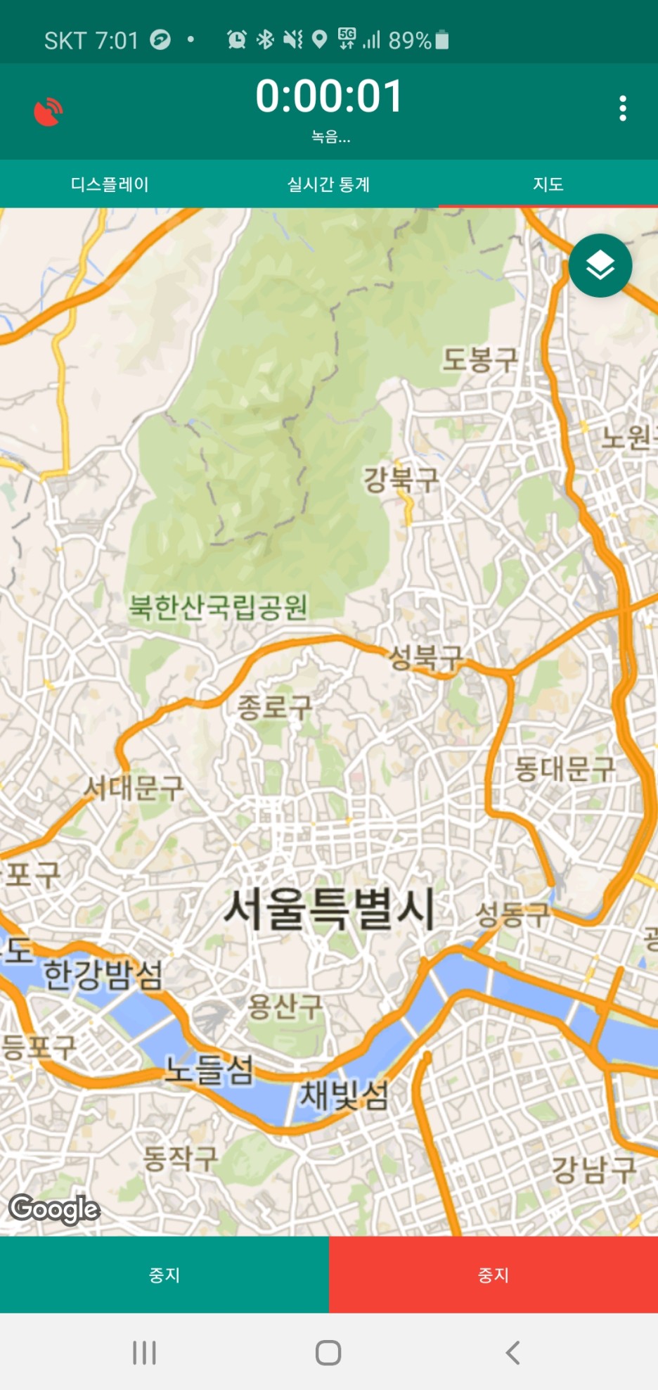 뭐 이렇게 속도계랑 이것저것 계산도 해준다. 일단 UI가 심플해서 보기 편했다. 일단 이앱을 출발할때 스타트를 누르고 출발했다.