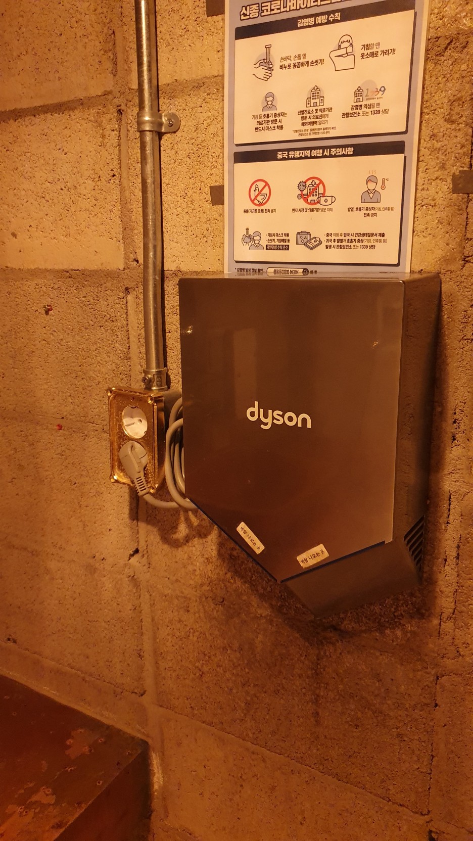 제일 놀란거 ㅋㅋㅋㅋㅋㅋ바로 핸드드라이어 ㅋㅋㅋㅋ 하.. 저건 진짜 ㅋㅋ 그냥 흰색이나 그냥 대중적으로 나온 아무 드라이어를 달아왔을법도 한데 여긴 저 화장실의 동색 분위기를 반사시킬 수 있는 철재 재질의 모양, 그리고 raw하게 각지고 날카로운 송풍구를 보니, 철과 증기의 시대인 스팀펑크의 분위기와 그래도 최대한 맞춘 드라이어를 보고 사다놓으신 것 같다. 심지어 브랜드는 다이슨