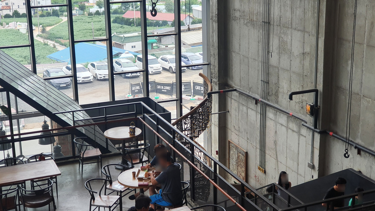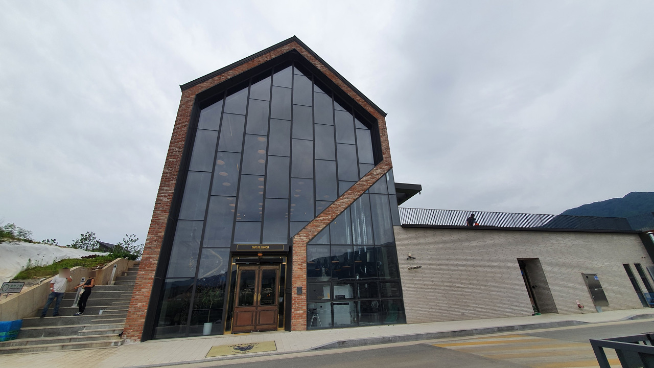 바깥 풍경이 강이나, 뭐 다른 식물들로 채워져 있었으면 더 좋았을텐데 저 주차장과 한국의 구수한.. 저 파랑, 빨강 플레이트 지붕... ㅋㅋㅋㅋ 아쉽다