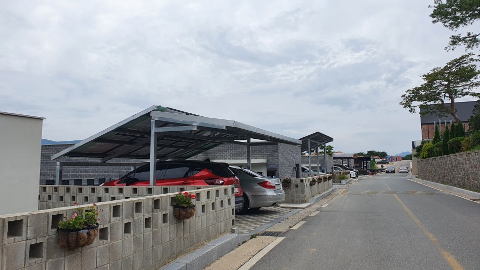 이곳을 걸으면서 계쏙 했던말이 전원주택 단지가 얼마나 하는지, 장점은 뭔지, 단점은 뭔지.. 너무 좋아보여서 계속 주택 이야기만 했던 것 같다. 연립주택단지에 갓길 주차되어있는 것만 보다가 저렇게 차고가 있는걸 보니 맘이다 시원해지는 기분이다.
