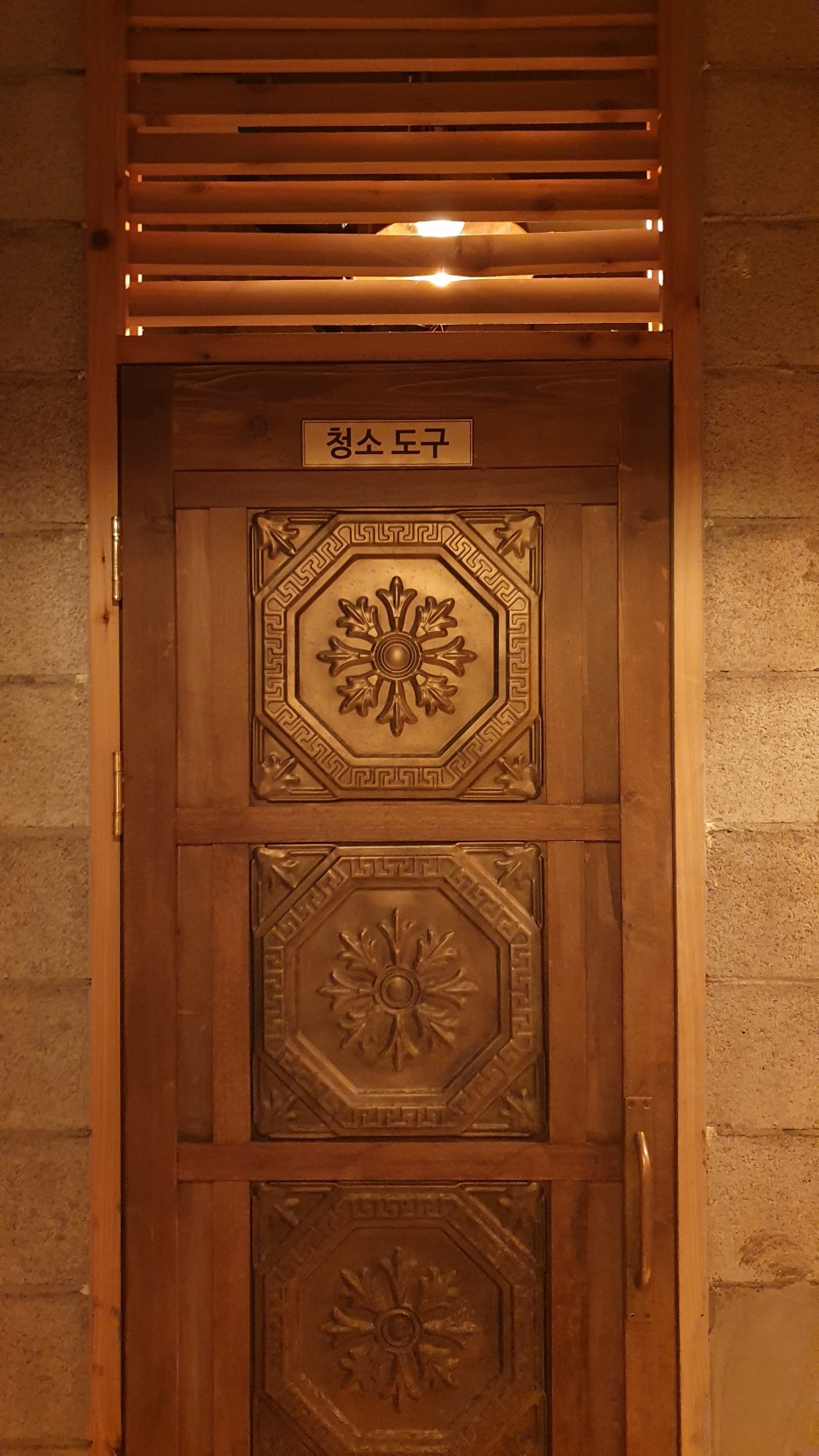 잘 사용하지 않는 청소도구함도 저렇게 구리색으로 인테리어를 통일해 놨다.
