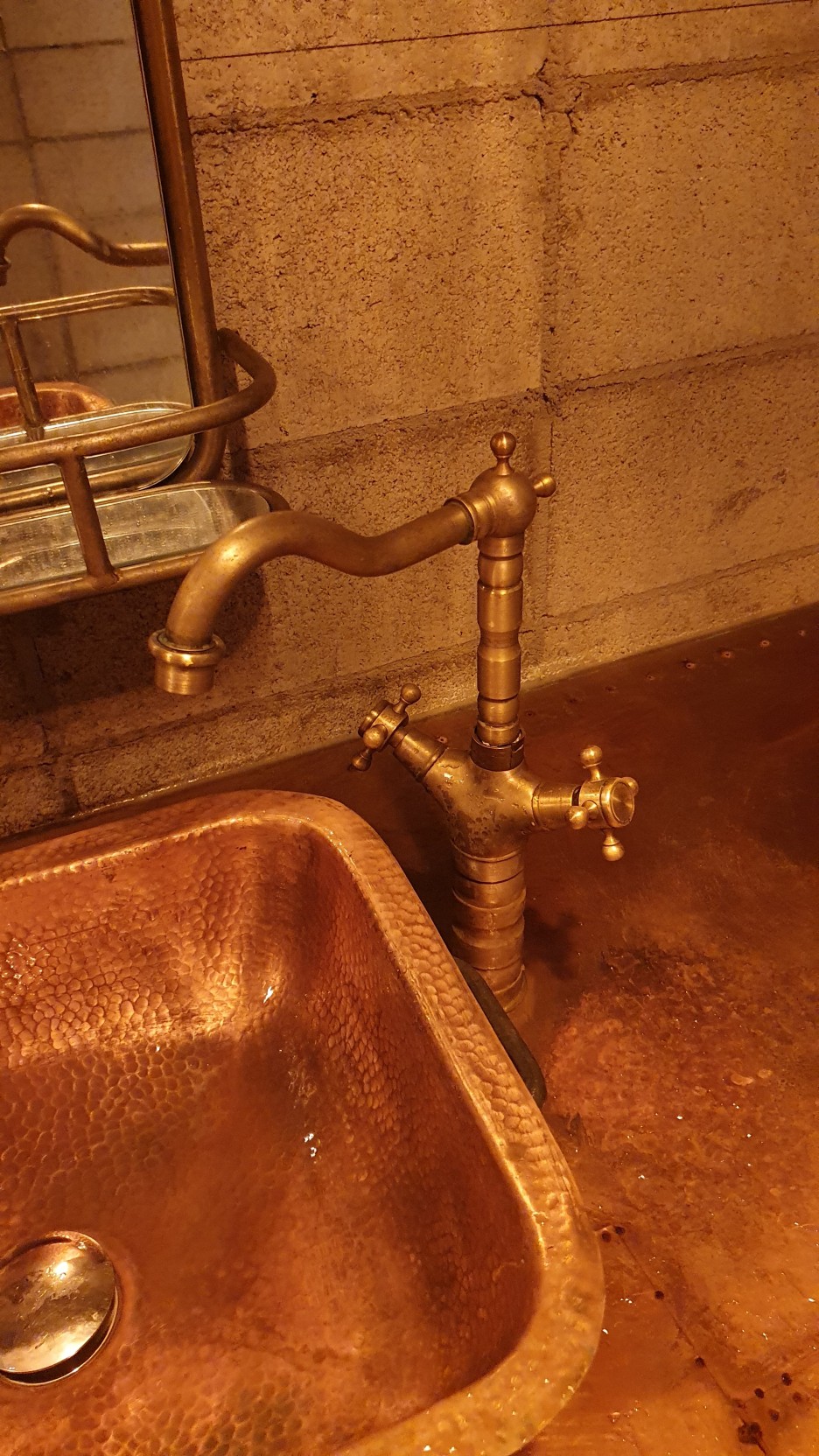 그 외에 사람들이 별로 보지 않는 곳의 디테일이 넘쳐놨다. 먼저 수도꼭지를 보자, 파이프로 구성된 수도꼭지, 감탄을 금할 수 없다. 저런거 어디서 가져온거야? 그리고 더놀란거.. 저 세면대 조차 파이프 재질의 느낌을 주고 있다. 대충 했다면 그래도 수도꼭지는 저렇게 한다치고 세면대는 그냥 흰색 도기 재질로 되어있는 대림이나 아메리칸 스탠다드 ㅋㅋ 이런거 넣어놨을꺼같은데.. 저것도 다 맞춘 모양.. 보면 거울도 동재질로 맞춘걸 볼 수 있다.
