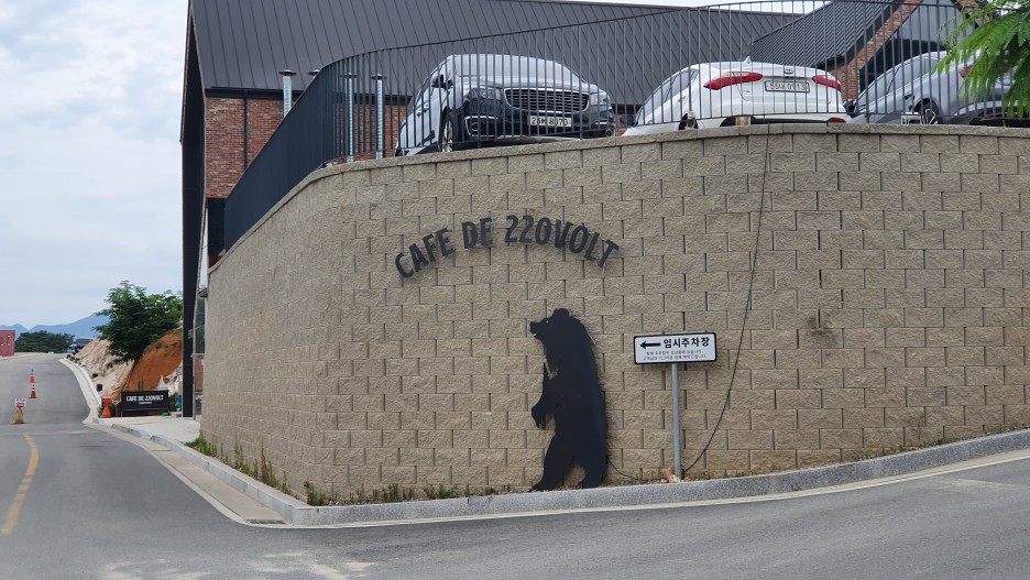 요기가 카페드 220볼트의 입구다. 저 곰 뒤로 빠진 선이 뭘까 궁금했는데 보니까 저녁에 저 곰 판넬 뒤로 빛이 나는거였다 ㅋㅋ 엥? 저거 선정리 더 깔끔하게 할 수 있었을꺼같은데? 살짝 아쉬웠다. 아님 저런 Raw한게 컨셉인가.!?