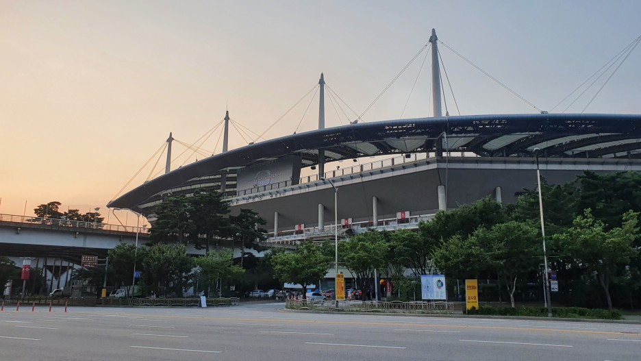 아까 무뚝뚝했던 월드컵 경기장에 빛이 들어왔다. 이제야 생기가 난다.