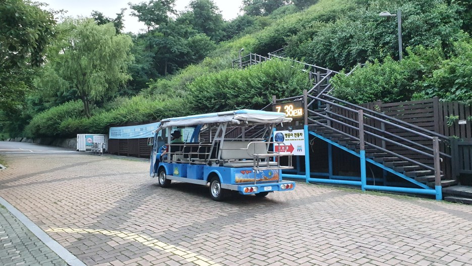 하늘공원 매표소 도착! 나는 약간 위로 올라간 뒤 뒤돌아 찍은 모습이다. 저기 우측이 매표소고 왼쪽에는 전기버스가 다닌다. 저거 몇천원 내고 탈 수 있는데 밑에서 설명하겠다. 아. 매표소라고 해서 뭐 돈받고 그런곳은 아니다. 아마저 버스 매표소인듯..?