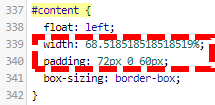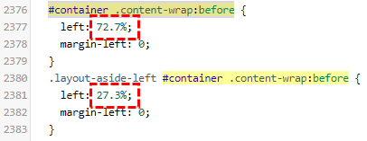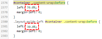 저 두 퍼센테이지를 바꿔줄 것이다. 잘 보면 저 두 비율의 합이 100%이고 보면 위에 것이 글이 나오는 컨텐츠 영영의 비율, 아래가 사이드바의 비율일 것으로 추측할 수 있다. 이건 무슨 코드냐면, 반응형으로 동작했을때 어떻게 도식할껀지에 대한 퍼센테이지 이다. 이걸 각각 70%, 30% 로 조정해준다. 이게 가장 자연스러웠던 것 같다.