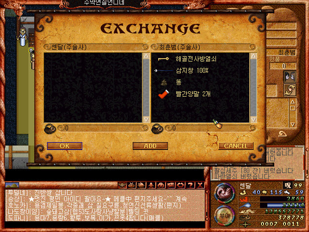 인파가 많은 비영 서쪽이나 북쪽 세계전도 가는길에 저런사람들이 많았다 ㅋㅋㅋ 멘트가 ㅋㅋㅋ 뭐 자기가 쓰레기통이니 필요없는 아이템을 넣어달라고 ㅋㅋㅋ 교환걸라고 ㅋㅋㅋ 그럼 저 사람들 컴퓨터에 자동 수락 매크로가 돌아가고 있어서 ㅋㅋ 뭘 주던 다 받게된다. ㅋㅋㅋ 그걸 보고 나와 같은 초딩들은 저기서 따라하곤 했다 ㅋㅋㅋ 당시 인심이 좋아서 돈도 주고 템도 좋은거 주는 부호들이 많았던 것 같다..... 저떄만 하더라도 거지도 살기좋은 세상..★