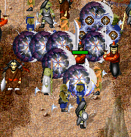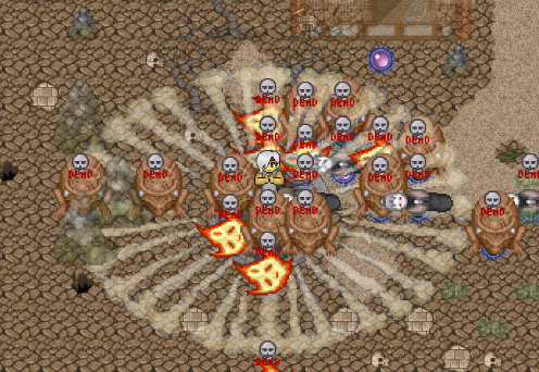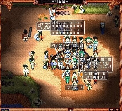 바람의나라는 죽을경우 가지고 있던 모든 돈과 아이템을 땅에 떨군다. ㅋㅋㅋ 그럼 그걸 30분내에 본 소유자가 안먹으면 다른사람들이 먹을 수 있게된다. 당시 바람의나라는 이동하면서 캐릭터를 겹칠 수 없었기 때문에 저렇게 아이템 위에 남이올라가면 비킬때까지 내 아이템을 먹을 수가 없었다. 저 위에 올라간 사람도 30분만 지나면 저 모든 아이템을 먹을수 있으니 ㅋㅋㅋ 30분간 골리다가 먹고 가는거다..