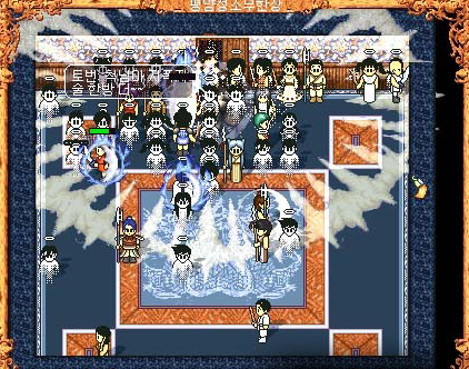 항상 문파 공성전을 볼때는 긴장감이 있었던 것 같다. 방식이 약간 특이한데 저 중앙에 각 문파에 가장 쎈사람들이 있고 그주변에 그다음으로 쎈사람들이 포진해있다. 바람의 격수는 자신의 체력에 비례해 데미지를 상대에게 주기때문에 공격할때마다 체력이 단다, 그럼 해당 문파의 비격수인 주술사, 도사들이 그 일짱분에게 체력을 회복시키면서 버티는 시스템이다.