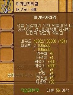 바람 보급형 간지템 탑순위에 있는 이가닌자의검.. 나처럼 초딩인 렙 1~60 언저리의 초보들은 저 칼 들고다니는 사람을 보면 와.. 고수구나 이런 생각을 했었다. ㅋㅋ 아마 격수 필수템이었던 것 같다.