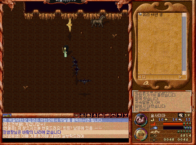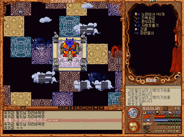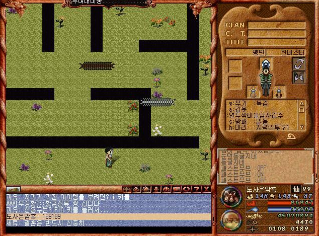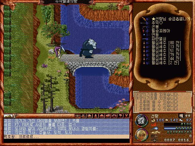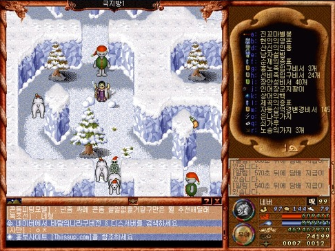 사진으론 없지만 ㅋㅋㅋ 어떻게 특정 경로로 따라가면 버그 공간으로 가는것이 있었다. ㅋㅋㅋ 이게 원리가.. 바람의나라에서 큰 맵들은 그 큰맵 하나로 오픈월드가 되어있는게 아니라 그 큰 맵이 섹터가 한 4지역으로 구분되어 경계를 넘어갈 경우 그 섹터로 전환되는 방식이었다.(내가 당시 보고 느낀결과)