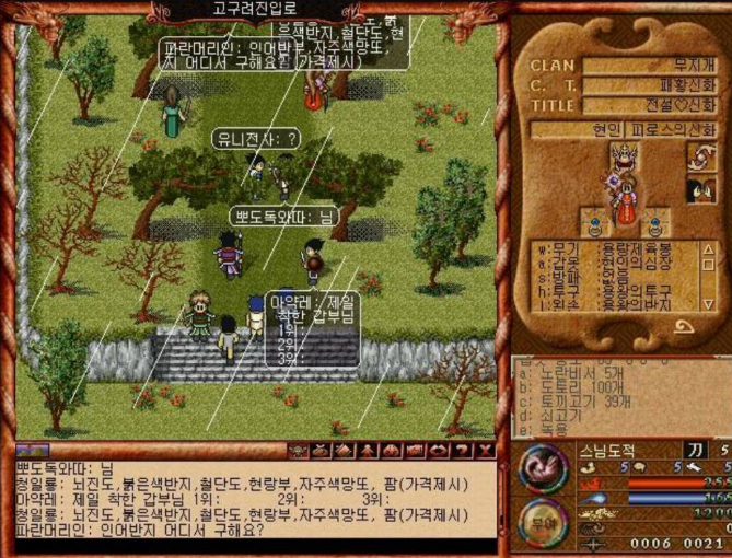 유치원때였나? 초1때 였나 PC와 인터넷망이 전국에 깔리면서 게임에서 온라인으로 만날 수 있다는 개념이 1990년대 말, 2000년대초 빠르게 확산됐다. 나는 인터넷 세상에 사람들이 그렇게 많이 모인다는 것 자체가 너무 신선했고, 또 그무대가 우리나라의 역사를 토대로한 장소에 모였다는게 너무 흥미로웠다. 이때부터 나는 컴퓨터에 관심을 가지게 됐고, 컴퓨터가 미지의 세계를 창조할 수 있다는 것에 매력을 느껴 지금 성인이 된 나는 프로그래머의 길을 걷고 있는것 같기도 하다.