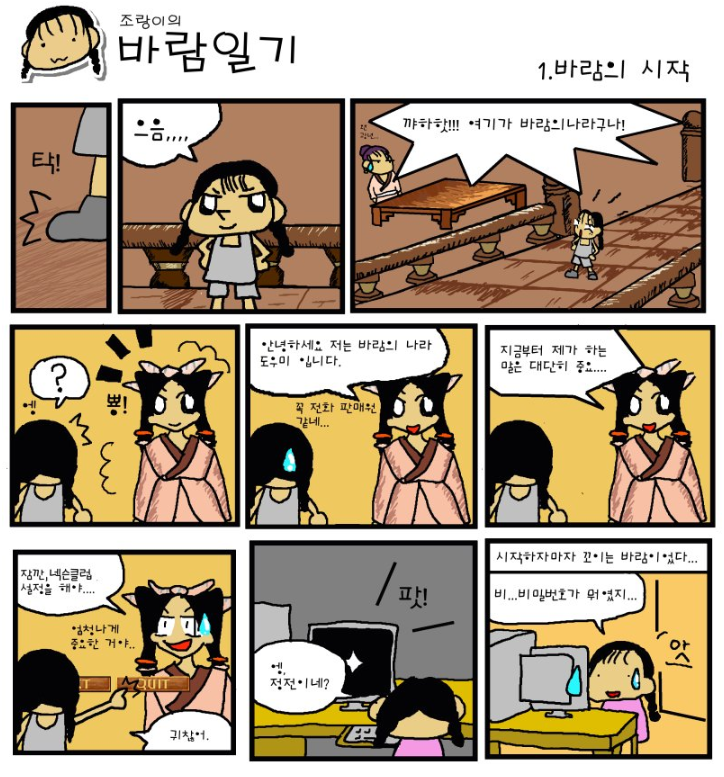 그리고 패치하거나 접속할 수 없을때 공홈에서 봤던 조랑이의 바람일기 ㅋㅋ 저거 진짜 재밌었는데 지금은 뭘 하실까