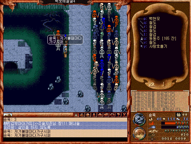 위에말한 해골왕을 잡고 나온 뼈로 만든 해골 갑옷.. 아직도 고가의 아이템이다. 당시 저 옷을 입은 사람만 보면 두 다리가 부들부들 떨렸다. 얼마나 강력한 사람이면 해골왕을 잡고 저 옷을 입고댕길까 ㄷㄷㄷ.ㄷ...
