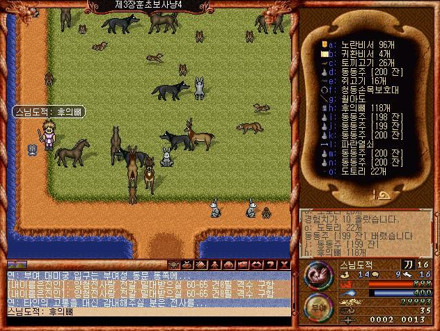 캐릭터 생성하고 렙 5때까지 열심히 사냥하던 초보자 사냥터 처음 이곳을 봤을때 토끼, 사슴, 다람쥐들이 뛰어다니고 있어서 너무신기했다 ㅋㅋ사냥이라고 느낀다기 보단 뭔가 저 세상으로 들어가서 여행을 하는 기분이었다.