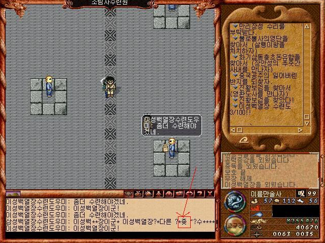 중국대륙이 추가되고나서 소림사에가면 백열장을 배울 수 있었다 ㅋㅋㅋ 특히 도사계열은 공격마법이 거의 없었기 때문에 도사들한테도 인기가 많았고, 격수들은 저 원거리 마법으로 몹들 어그로를 끌 수 있어서 많이 배웠다 ㅋㅋㅋㅋ 여기서 계속 수련하면 스킬이 강력해지는 시스템이다 ㅋㅋ
