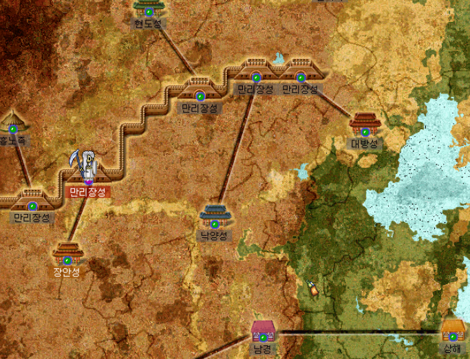 당시 중국패치가 됐을때 세계전도가 저러했다 ㅋㅋ 대방성 살퀭이 부터 낙양성, 장안성 컨텐츠가 너무많아서 하루하루가 행복했던 시절이었다.