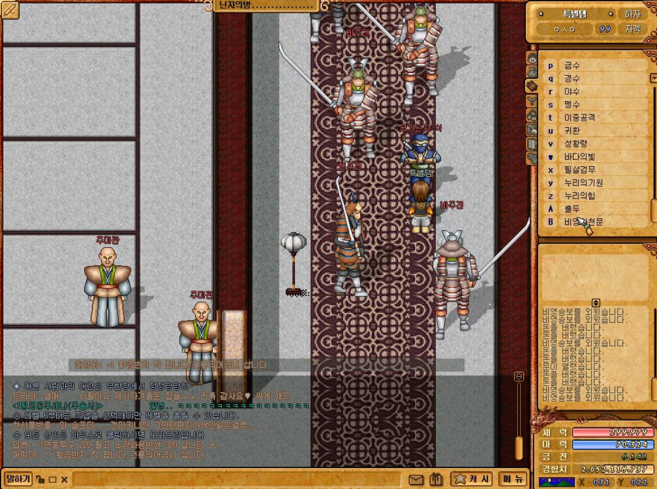 가장 지옥이었던 것은 ㅋㅋㅋㅋㅋㅋㅋㅋㅋㅋㅋㅋㅋ 고수들이 무한장 나가는 문을 잠궈버린다 ㅋㅋㅋㅋ 단축키가 o키 였던거 같은데 맞나? ㅋㅋㅋㅋ저기서 성황령이 안됐었나? 암튼 죽으면 노란비서나 마법을 쓸 수 없어 걸어서 나가야했는데 ㅋㅋㅋ 저걸 잠궈버리면 유령들이 나가지도 못하고 일찐들이 열어줄테까지 기달려야했다 ㅋㅋㅋ 진짜 지옥같았던 무한장 ㅋㅋ