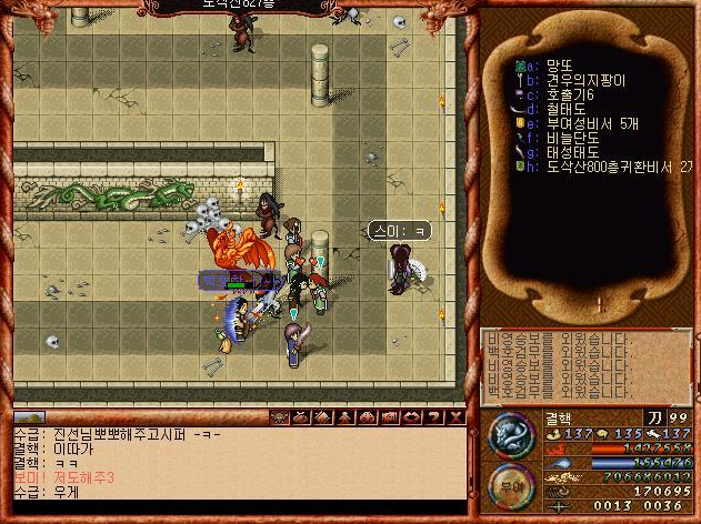 모든 직업군 필수 템이 었던 동동주 ㅋㅋㅋ 도사 주술사마저도 동동주가 필수... 공력증강 실패해서 공력증강할 마력이 부족할때 먹곤 했다. ㅋㅋ 보통 아이템창 u에 넣고 사용하기 단축키인 u+uuuuu쭉 눌러서 흡입하기를 했었다.