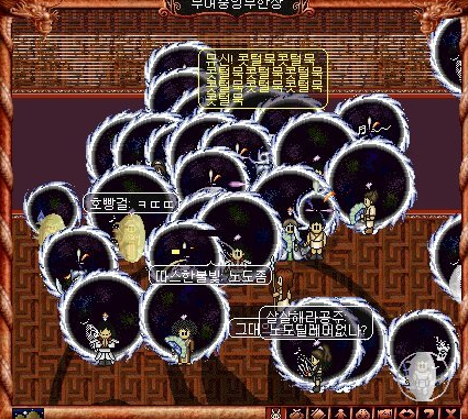 바람 전사 스킬중에 초혼비무라는 스킬이 있다. 3칸 앞에있는 적을 내 앞으로 당기는 기술인데 ㅋㅋㅋ 저걸 원래는 몬스터한테 써야하는데... 또... 유저들의 엇나간 인격 ㅠㅠ.. ㅋㅋㅋ 바로 자기 게임아이템 자랑하려고 다리밑에 뿌리고 자랑하는 사람이 있으면 몰래와서 초혼비무로 땡기고 같으 패거리가 그걸 먹는 방법이 있었다 ㅋㅋㅋ