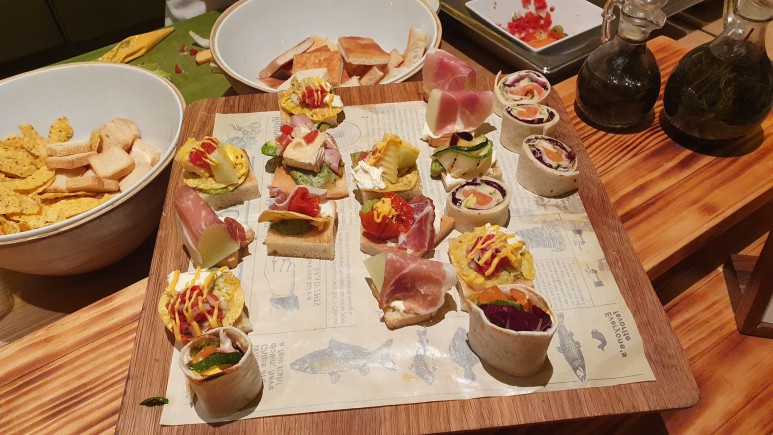 해산물 싫어하는데 회랑 스시는 너무 맛있어서 계속 가져다 먹었다. 이게 해산물 싫어하는 사람도 이 병이 치료되게 하는 맛이다. 베이징덕은 이번에 스테이크 소스를 묻혀서 가져왔다. 파인애플은 구운 파일애플로 맛있엇고 의외로 메론이 사람들한테 인기가 많았다.ㅋㅋ