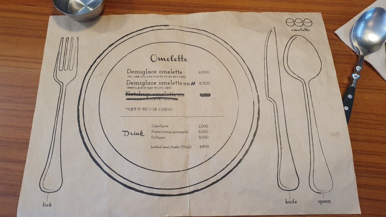 전문점 답게 메뉴는 간단하다. 그냥 오믈렛, 매운 오믈렛, 시킬때 곱빼기 있냐고 진심반, 장난반으로 물어봤는데 그냥 밥 많이주신다고 하셨다. 엄청 착하고 센스가 있다고 느껴졌다.
