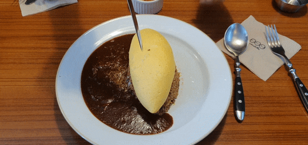 저렇게 가르면 안에 계란들이 풀어 헤쳐진다. 맛은 합격, 내 포스팅들 보면 알겠지만 굉장히 솔직해서 맛없으면 고소를 안당하는 선에서 경계를 고묘하게 넘나들며 까는데, 여긴 비쥬얼도, 맛도 좋았다. 그리고 음식도 심플해서 회전율이 빠르다.