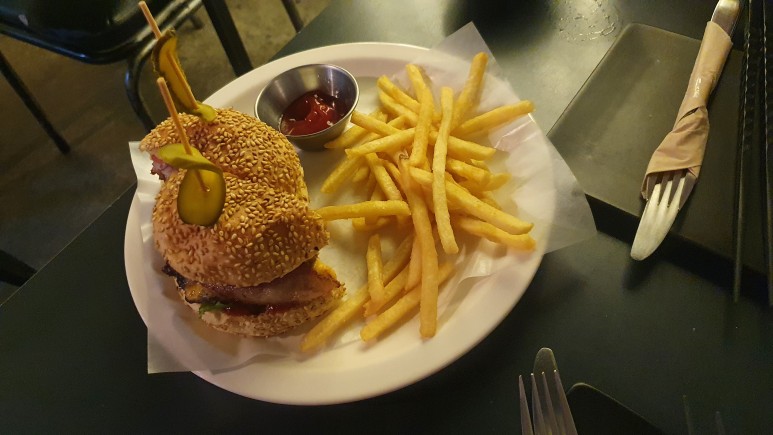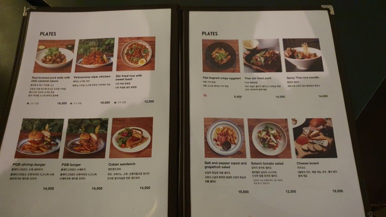 메뉴는 이렇다. 우리는 맥주 3잔, 햄버거세트, 그리고 똠양꿍을 시켰당.