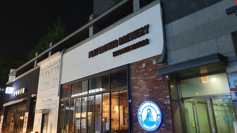 호캉스를 할때는 차량운행을 하지 않고 잘 수 있어 맥주를 마시러왔다. 항상 차를 가지고 댕겨서 술먹을 날이 없는데 이럴때 아니면 못먹는다. 원래 호텔 라운지에서 먹으려했으나, 주변에 더 괜찮은 곳이 있어 방문했다. 우리가 방문한 곳은 송도 플레이그라운드 탭룸!