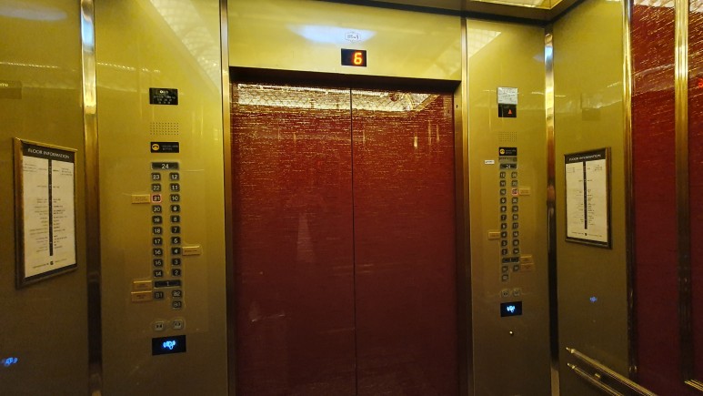 롯데호텔에 가면 있는 이 뻘건 엘레베이터, 익숙했다. 5성, 4성 모두 이 기종이었던 것 같다.