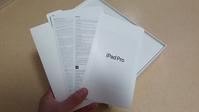 초기설정을 하는동안 구성품을 살펴보았다. 일단 종이쪼가리들 하고 충전기가 들어있다. 요즘 기사로 애플이 환경오염을 막기위해 충전기는 안넣어 준다는데 아이패드드는 아닌가? 넣어줘서 엥? 했다.