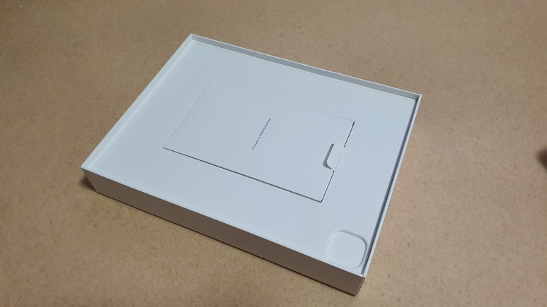 상자 커버를 벗겨보았다. 안에 아이패드 프로가 비닐로 포장되어있다.