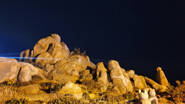 아간 사진 찍는데 바위들도 다 네온 빛에 덮여버렸다 ㅠ
