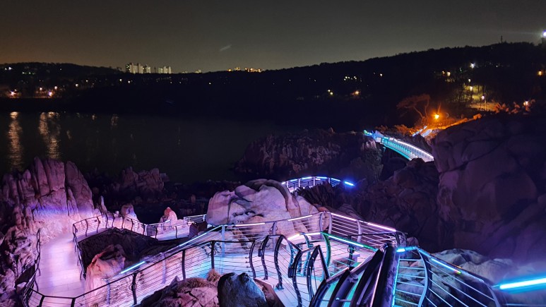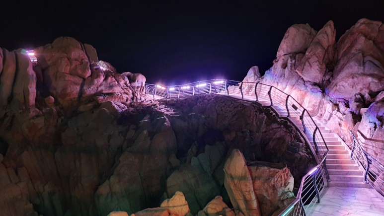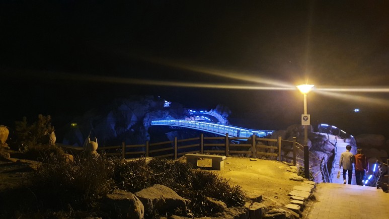 다리는 용궁사처럼 하는건 불가능했을까!? 먼가 바위라는 자연과, 철제 다리는 어울리지 않는 모습이었다. 거기에다가 네온 조명을보니 한숨이 절로 나왔다.