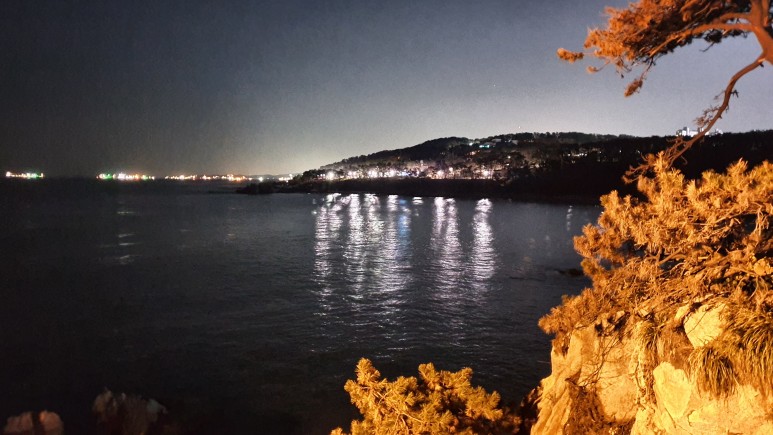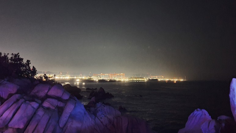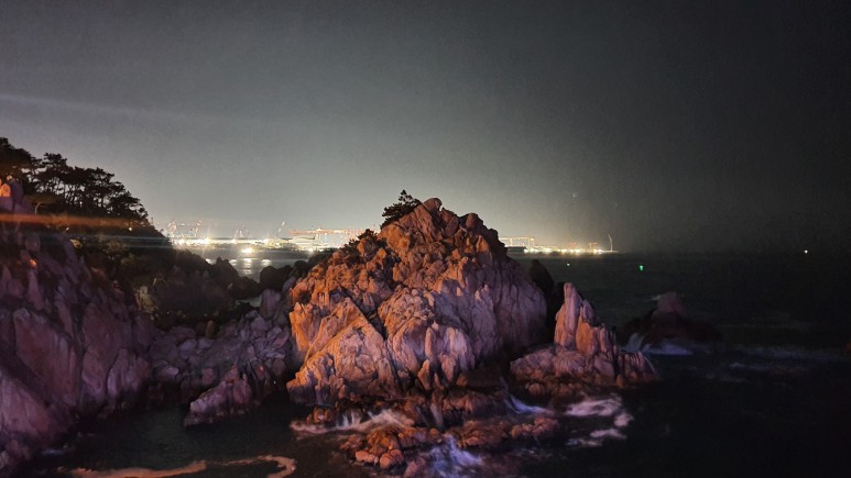 한 10분 걸어야하나? 숲을 뚫고 들어오면 대왕암이 나타난다. 그나저나.. 이게 무슨 얼어죽을 야경짱이냐.. ㅡㅡ K조명으로 인해 눈만아프고 사진도 개떡같이 나오고 무슨 중국 놀이공원에 온듯한 느낌이다.