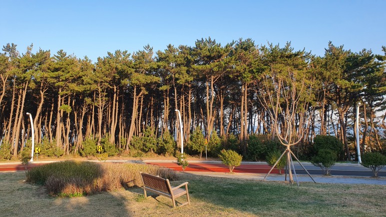 강릉에서나 보던 나무숲이 여기도 이싿. 저 품종이 바닷가에서 잘자라는걸까