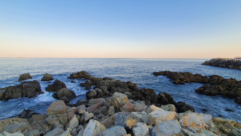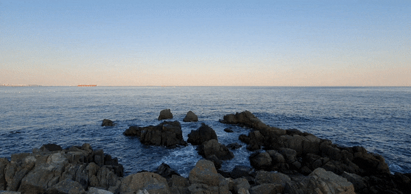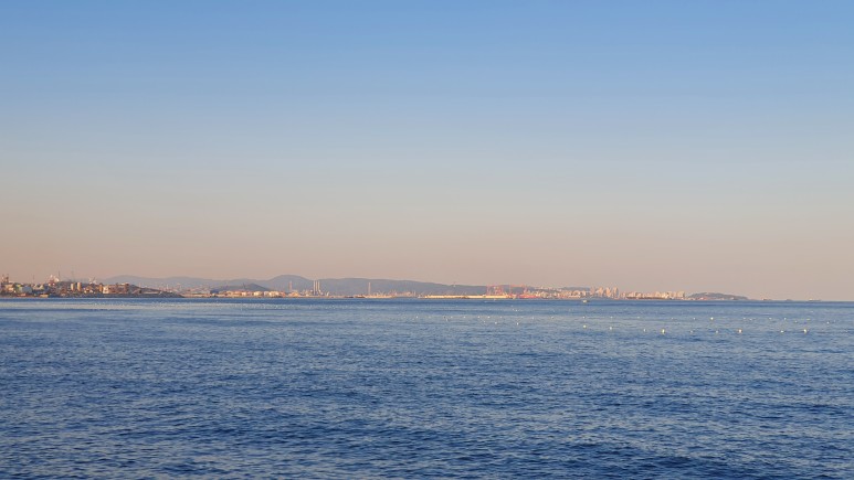 구름이 하나도 없이 수평선 경계가 찐하게 보였다.