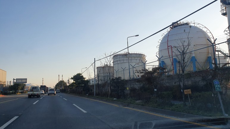 가면서 공업의 도시답게 가스탱크들이 많았다.